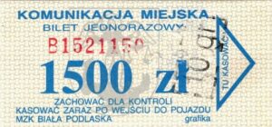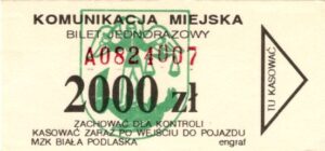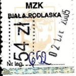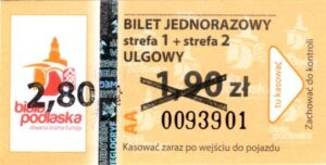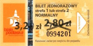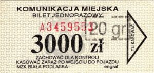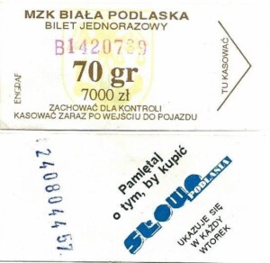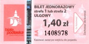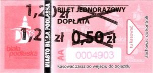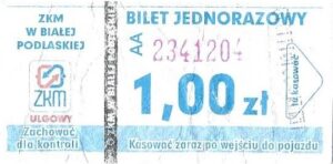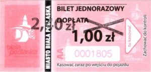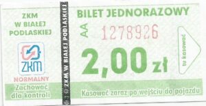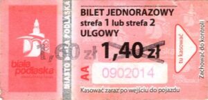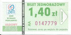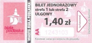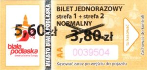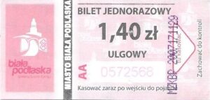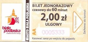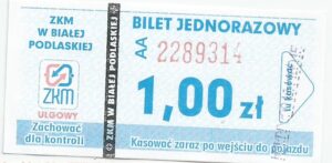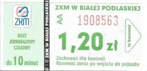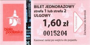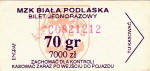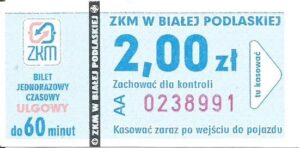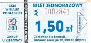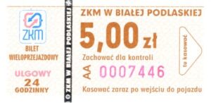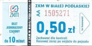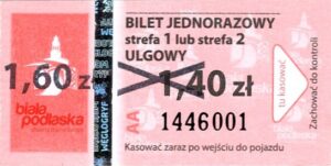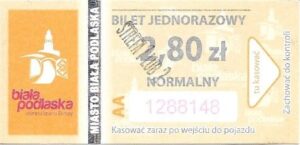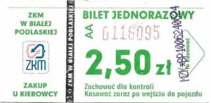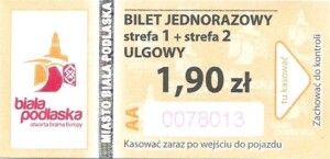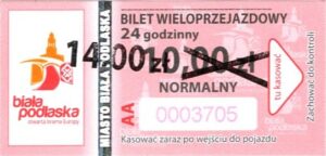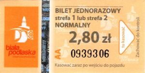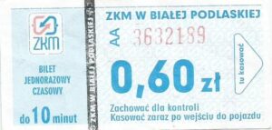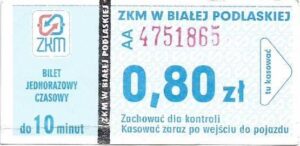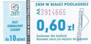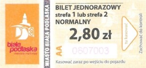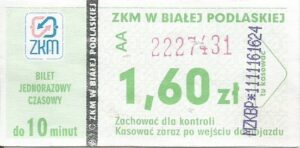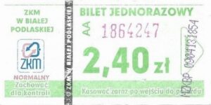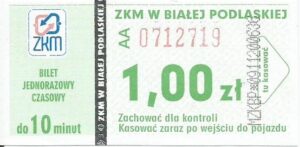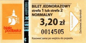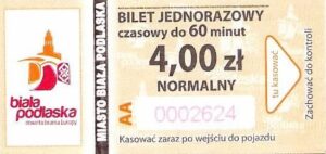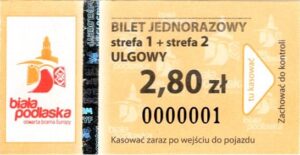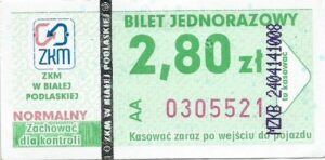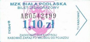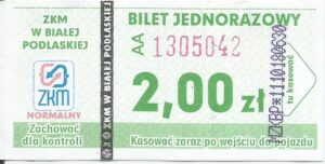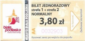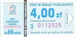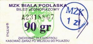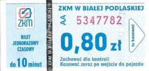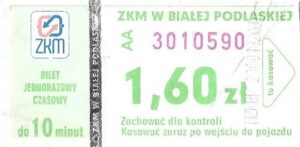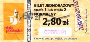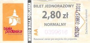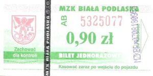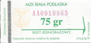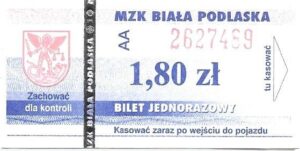- MZK Biała Podlaska, z lewej strony herb miasta, pasek holograficzny: