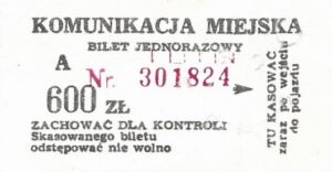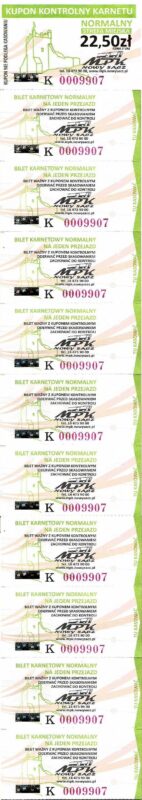 Uwaga: Bilety zakupione u kierowcy zamiast napisu MPK w tle, z lewej strony mają literę K