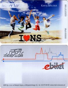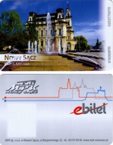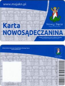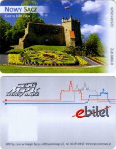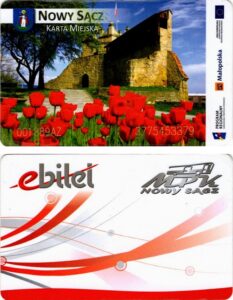 • Z lewej strony napis Nowy Sącz, Miejskie Przedsiębiorstwo Komunikacyjne Spółka z o.o.: