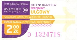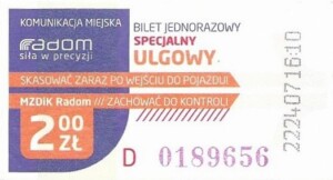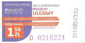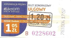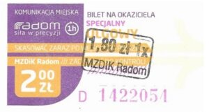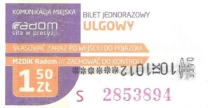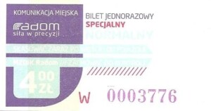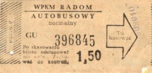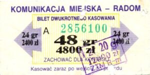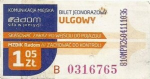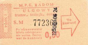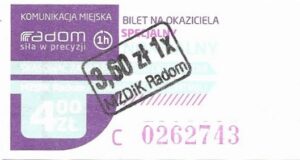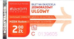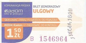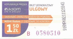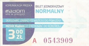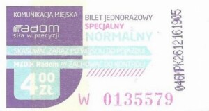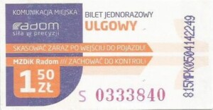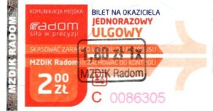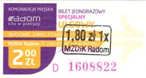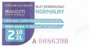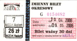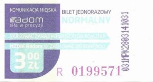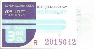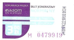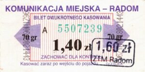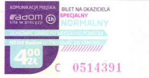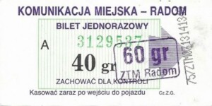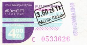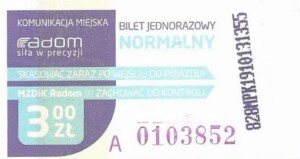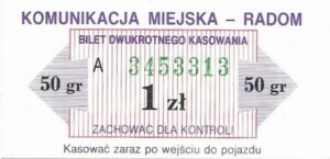 - Prostokąt z pasami w tle, Komunikacja Miejska – Radom, Cz.Z.G.: