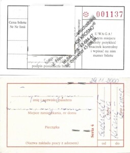 - Logotyp MKS, logotyp autobusu, różowy numerator, hologram DCZG Ochrona Security, Miejska Komunikacja Samochodowa Sp. z o.o.:
