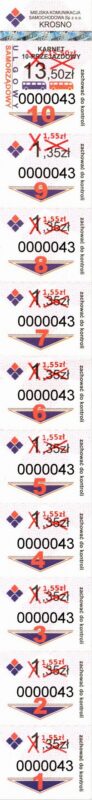 - Logotyp MKS, zielony numerator, hologram DCZG, Miejska Komunikacja Samochodowa Sp. z o.o.:
