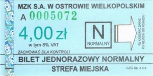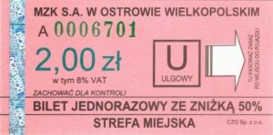 - Seria ogólnopolska, przestemplowano Miejski Zakład Komunikacji Ostrów Wlkp.: