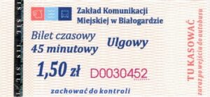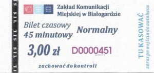 - Zakład Komunikacji Miejskiej w Białogardzie, pole na wydruk kasownika, hologram DrukFont: