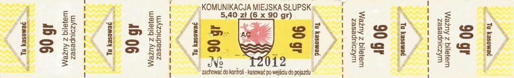 - Komunikacja Miejska Słupsk, herb miasta, informacje o ważności biletu, hologram CZG Ochrona: