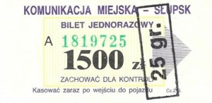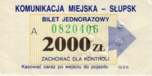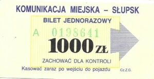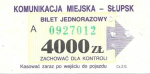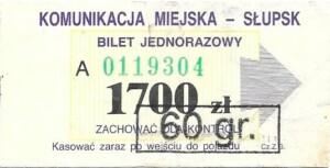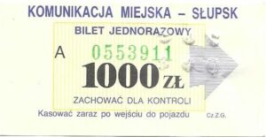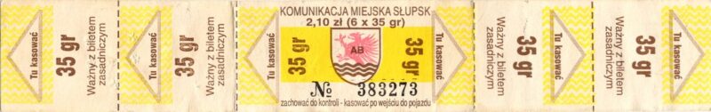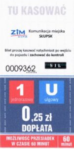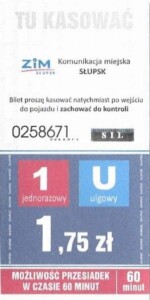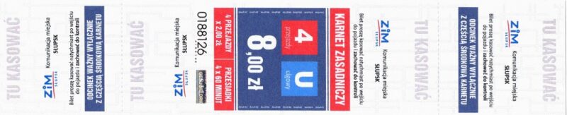 - Herb miasta z lewej strony, pole na wydruk kasownika, hologram DrukFont, MZK Słupsk: