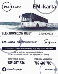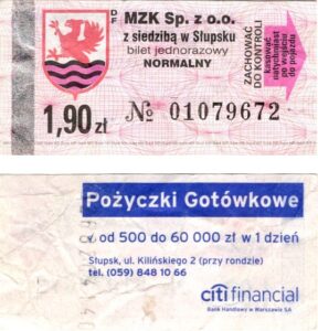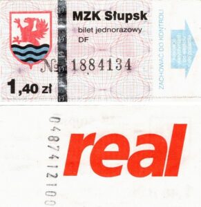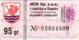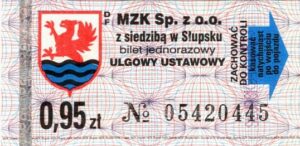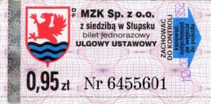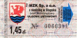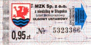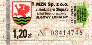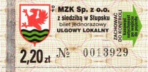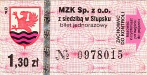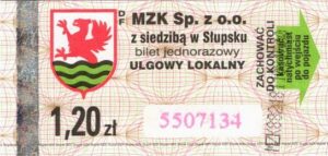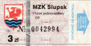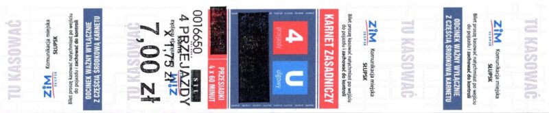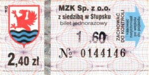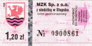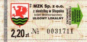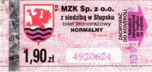 - Herb miasta z lewej strony, pole na wydruk kasownika, hologram DrukFont, MZK Sp. z o.o. z siedzibą w Słupsku: