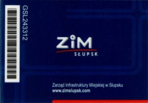 - Komunikacja Miejska Słupsk, logo ZIM, informacje o ważności biletu, hologram DCZG Ochrona Security: