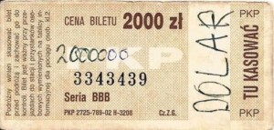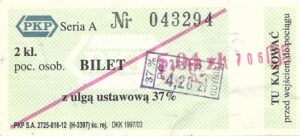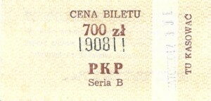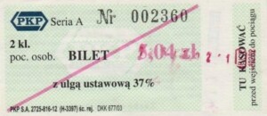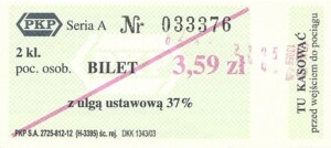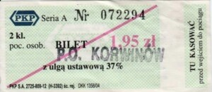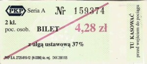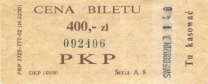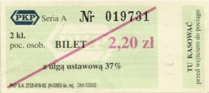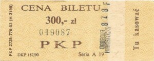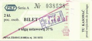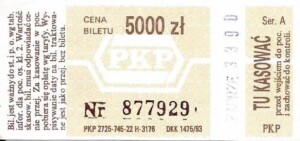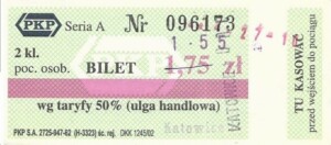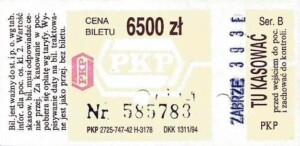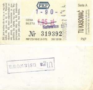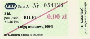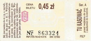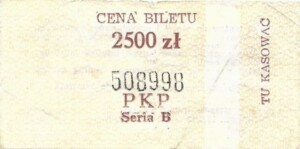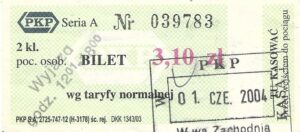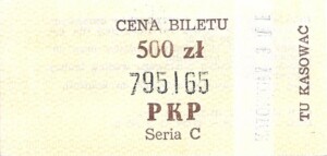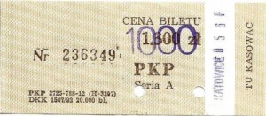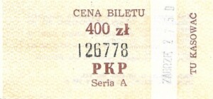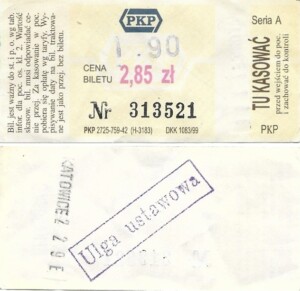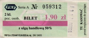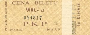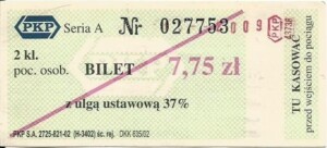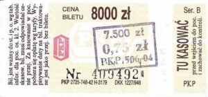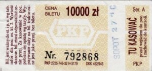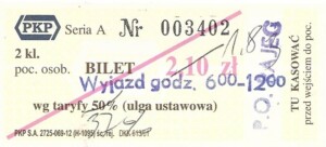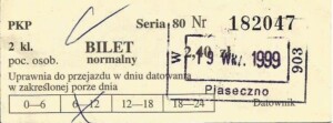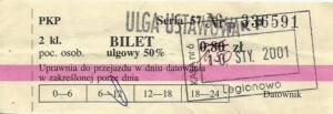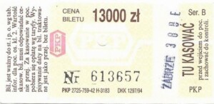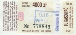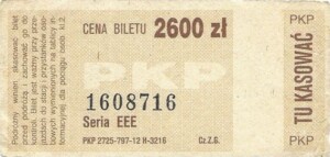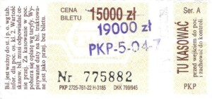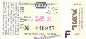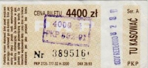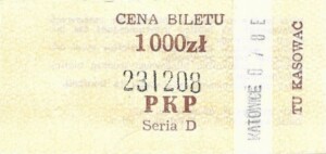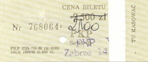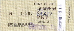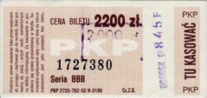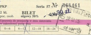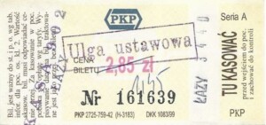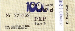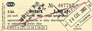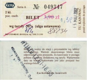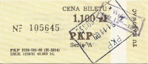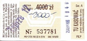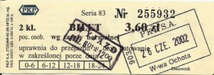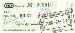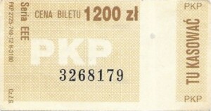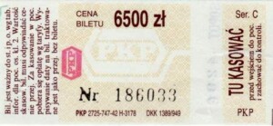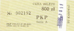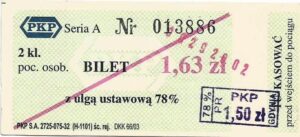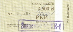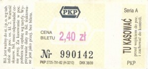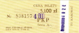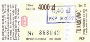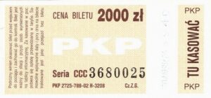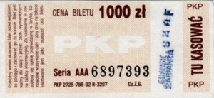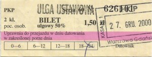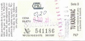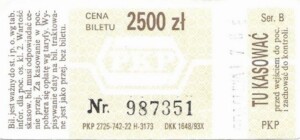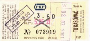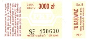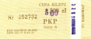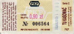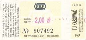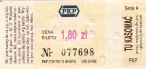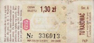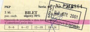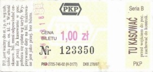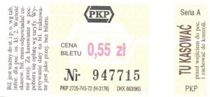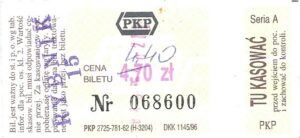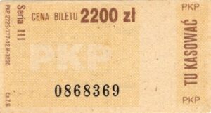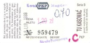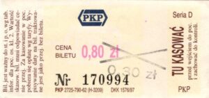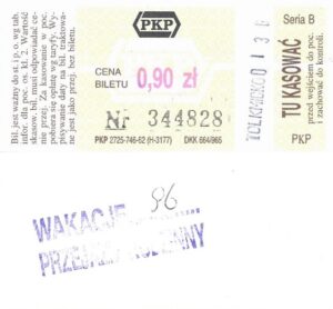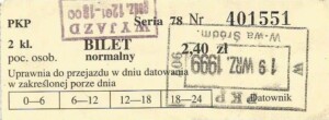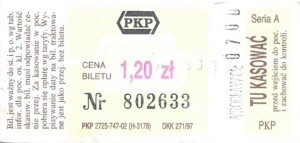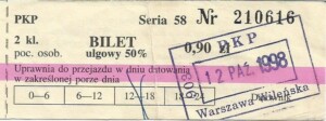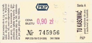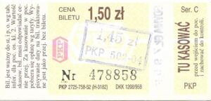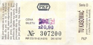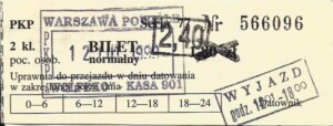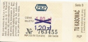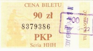 BILET DO KASOWANIA PKP (WARSZAWSKI WĘZEŁ KOLEJOWY):