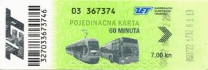 • Logo Zagrebački Električni Tramvaj d.o.o., pojazdy, hologram z logotypami ZET:
