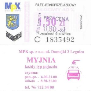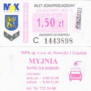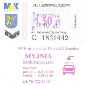 • Tło „jodełka”, wersja ogólnopolska – przestemplowano MPK Legnica: