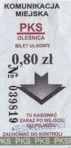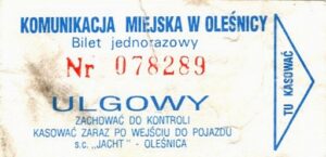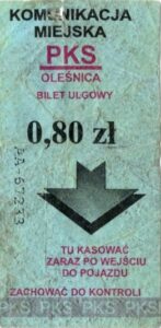 Oleśnica Drukarnia Poznańskie Zakłady Graficzne:PKS: Drukarnia WIK:Komunikacja Miejska w Oleśnicy, nominał: Komunikacja Miejska w Oleśnicy: PKS Oleśnica, nominał: