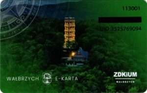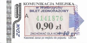 - Komunikacja Miejska w Wałbrzychu, herb miasta, logo ZDiK pod ceną, hologram „trójkąty”: