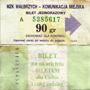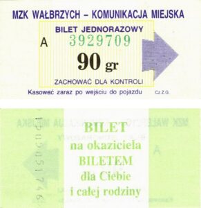 - Komunikacja Miejska w Wałbrzychu, herb miasta, różowy numerator, hologram GRAF, w tym VAT: