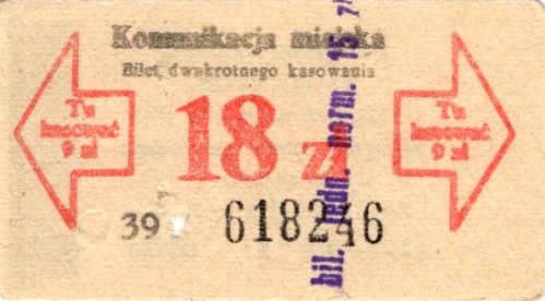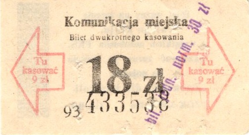 - Komunikacja Miejska w Wałbrzychu, herb miasta, różowy numerator, hologram GRAF, w tym VAT: