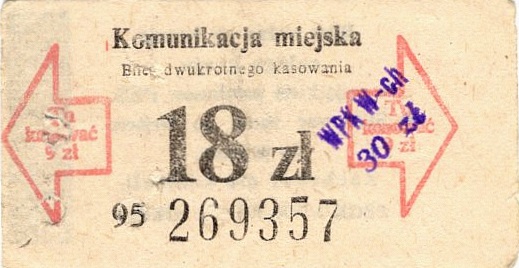 - Komunikacja Miejska w Wałbrzychu, herb miasta, logo ZDiK pod ceną, hologram „trójkąty”: