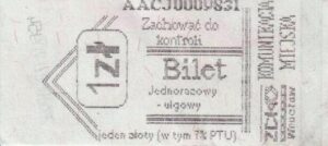 Zmniejszona czcionka napisu „BILET JEDNORAZOWY”