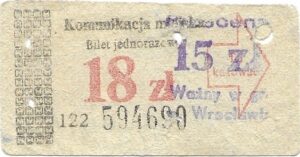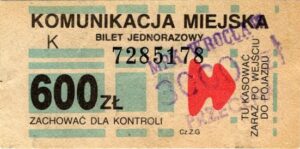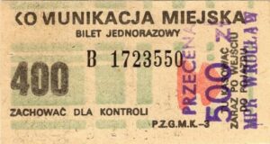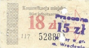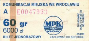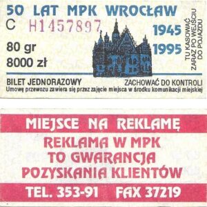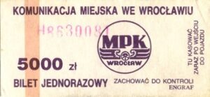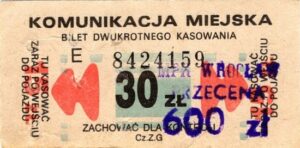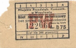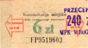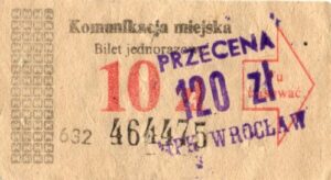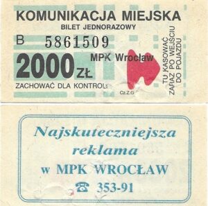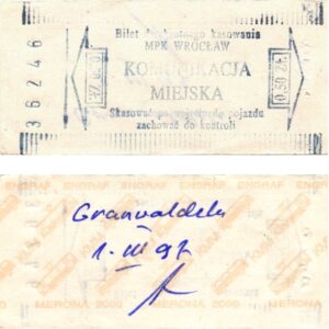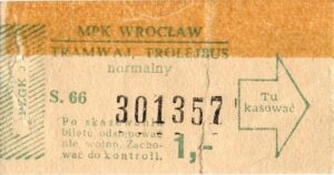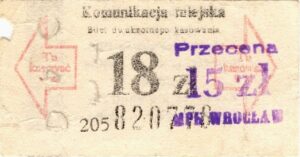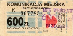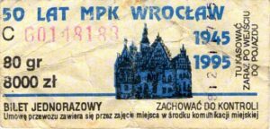- W tle prostokąty, seria ogólnopolska – przestemplowano MPK Wrocław, Cz.Z.G.:
