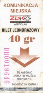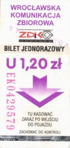 - Wrocławska Komunikacja Zbiorowa, logo ZDiK Wrocław, cena na tle, hologram z logotypami ZDiK Wrocław: