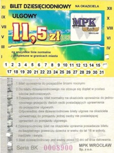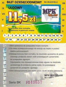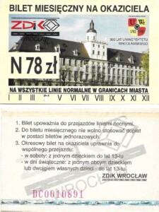 Uwaga: Bilety semestralne mają podziałkę 2009/2010|2010/2011
