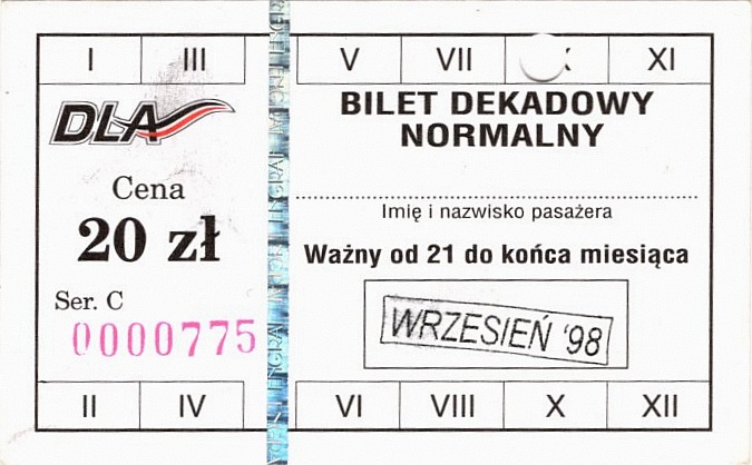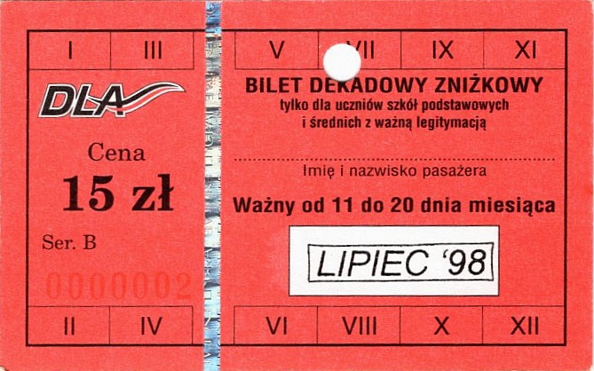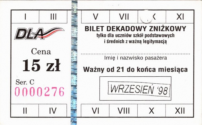 Uwaga: Bilety semestralne mają podziałkę 2009/2010|2010/2011