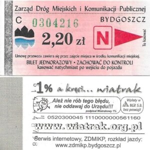 BILETY NA BYDGOSKI TRAMWAJ WODNY: