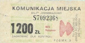 • Komunikacja Miejska w Bydgoszczy, w tle napisy MZK: