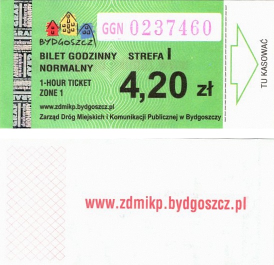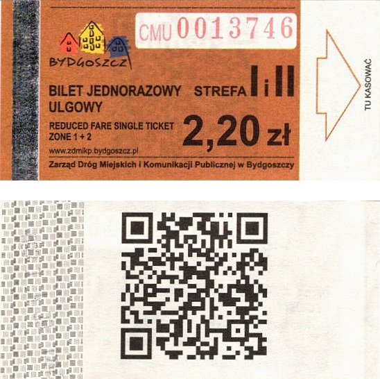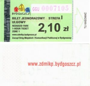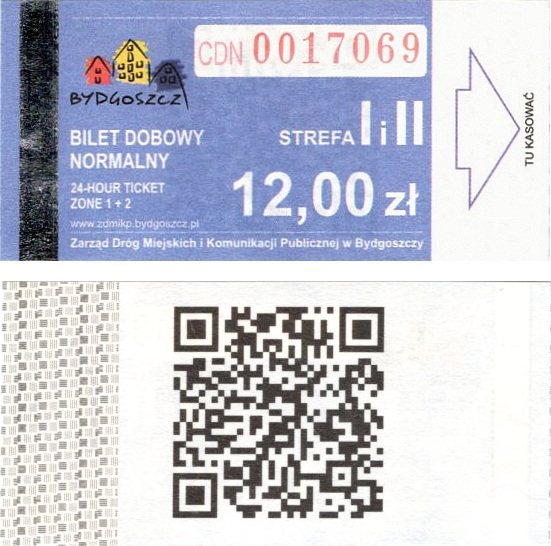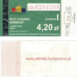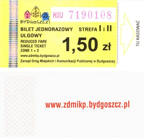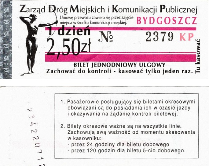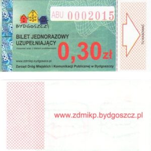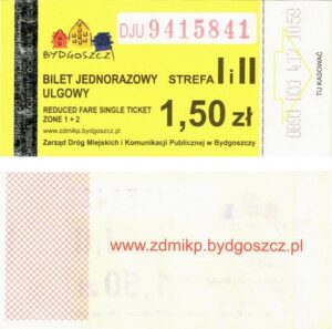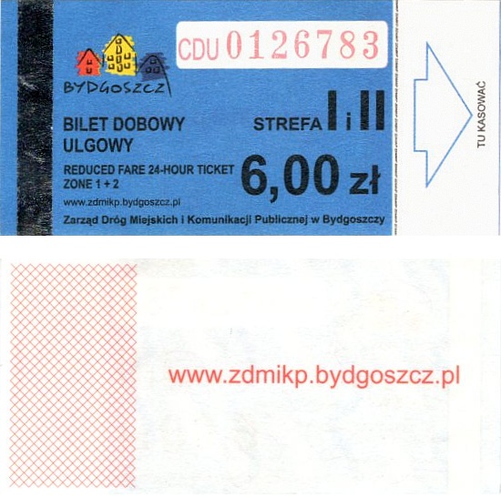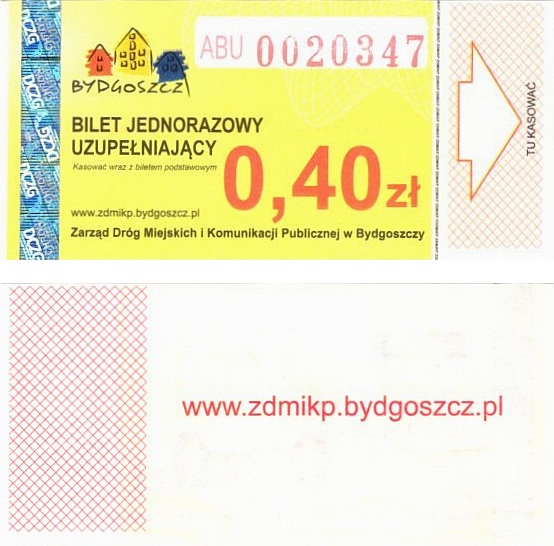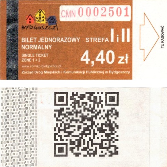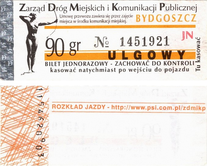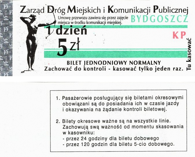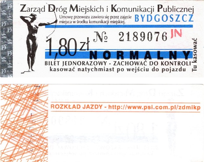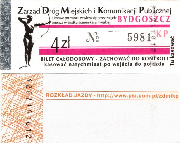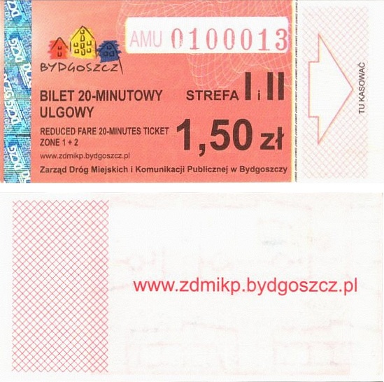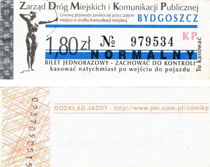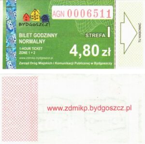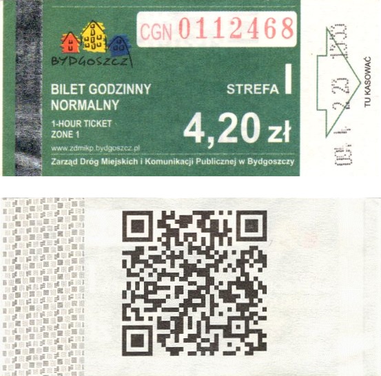 - Zarząd Dróg Miejskich i Komunikacji Publicznej w Bydgoszczy, pomnik Łuczniczki, ULGOWY/NORMALNY, hologram DrukFont (zmodyfikowany):