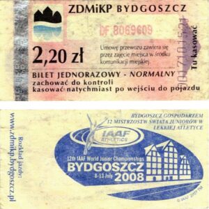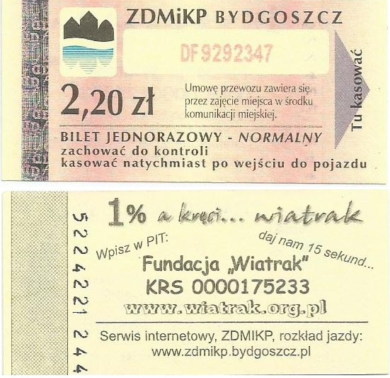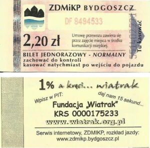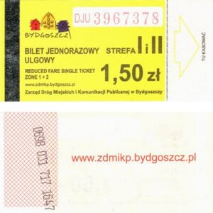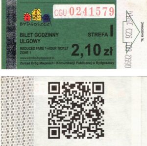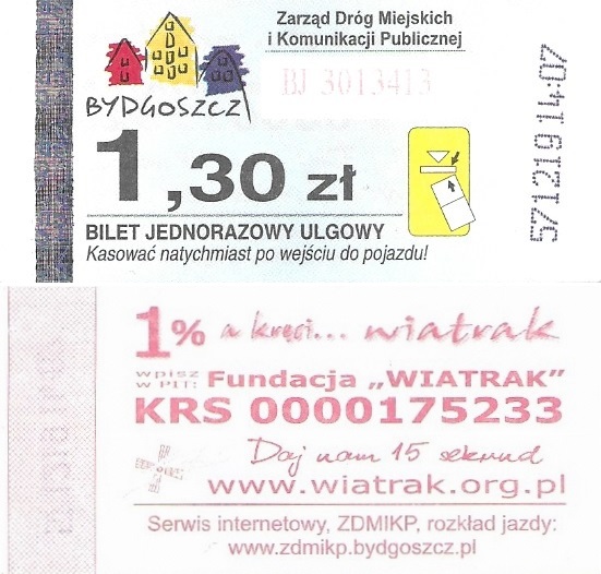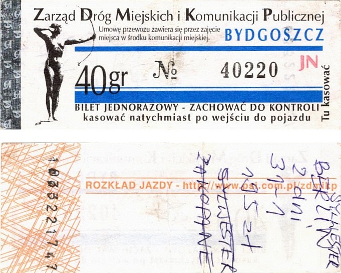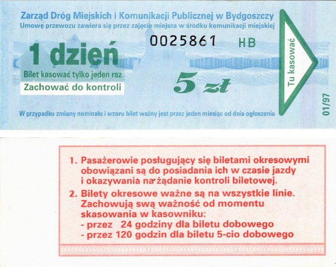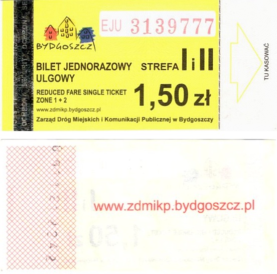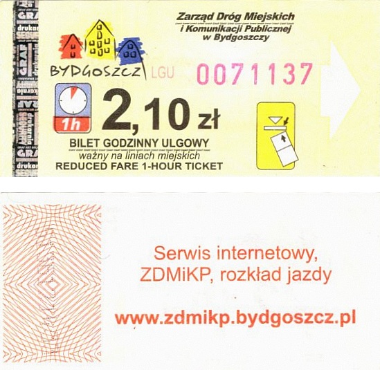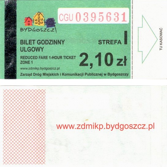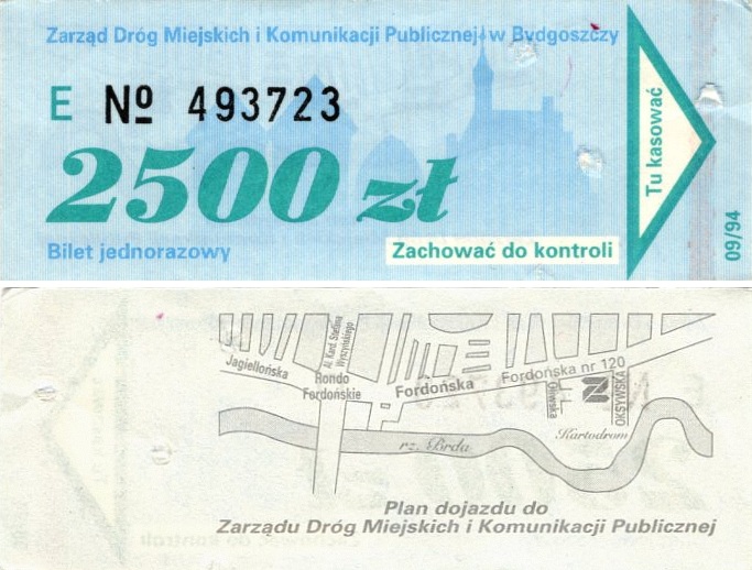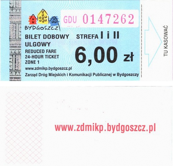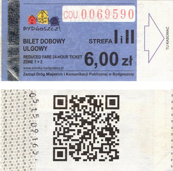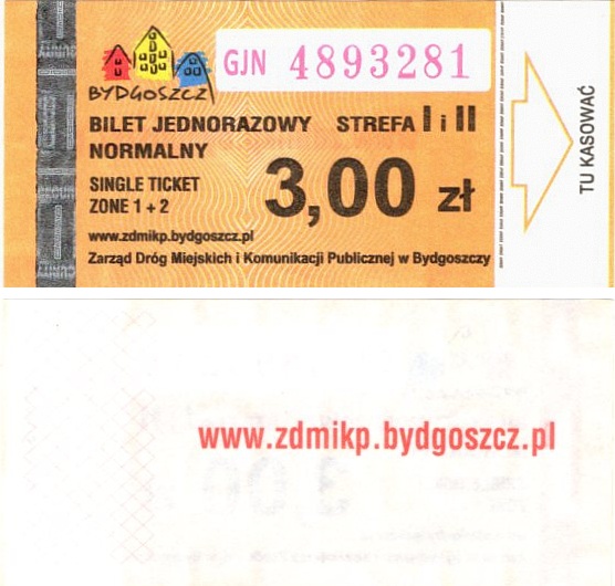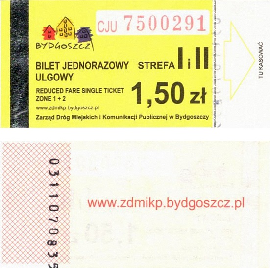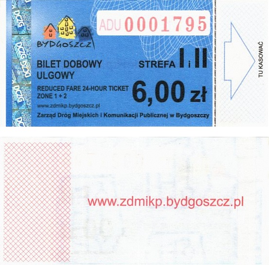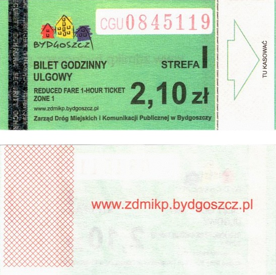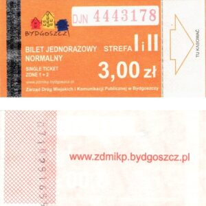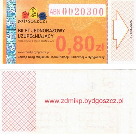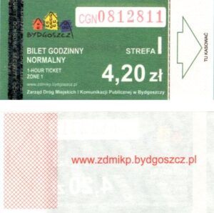 - Zarząd Dróg Miejskich i Komunikacji Publicznej w Bydgoszczy, pomnik Łuczniczki, ULGOWY/NORMALNY, hologram DrukFont (zmodyfikowany):