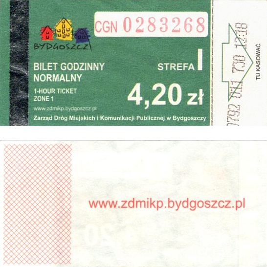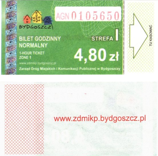 - Zarząd Dróg Miejskich i Komunikacji Publicznej w Bydgoszczy, logo miasta, hologram CZG Ochrona: