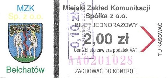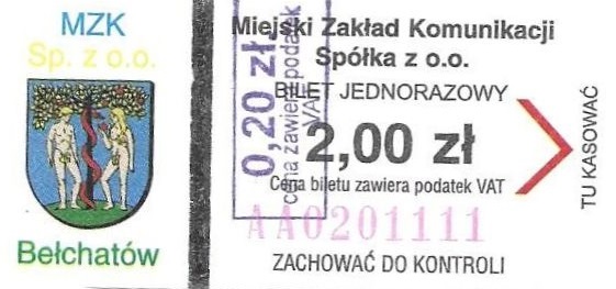 - W tle prostokąty, seria ogólnopolska – przestemplowano MZK w Bełchatowie: