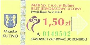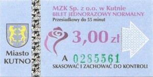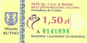 - Napis MZK Sp. z o.o. w Kutnie, tło „jodełka”, czerwony numerator: