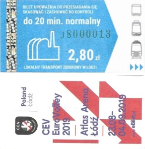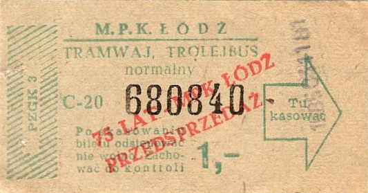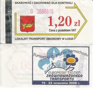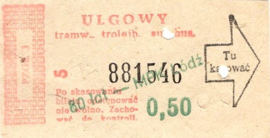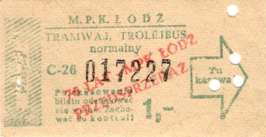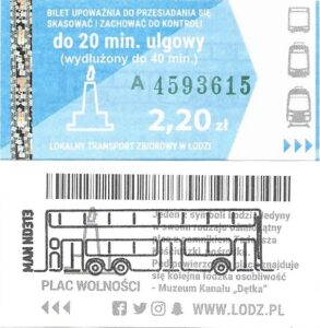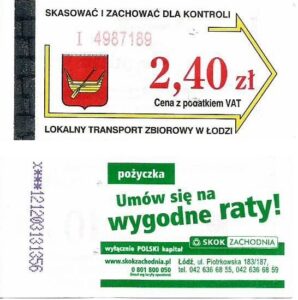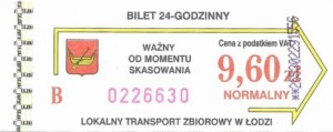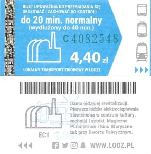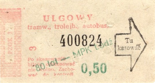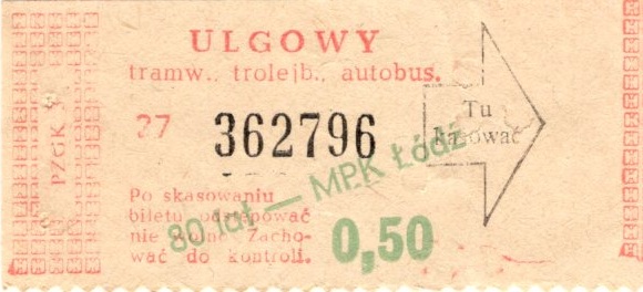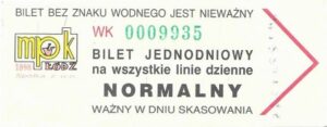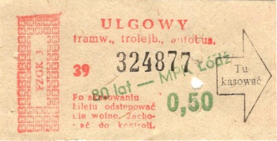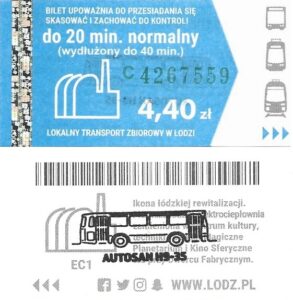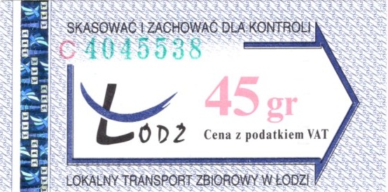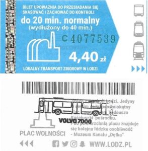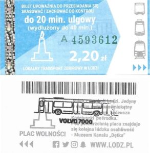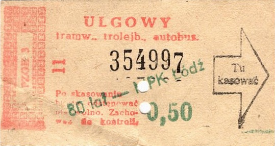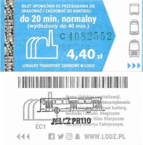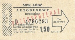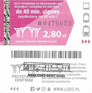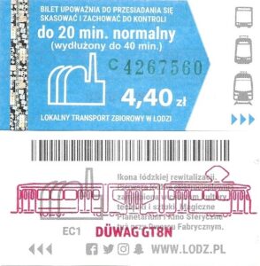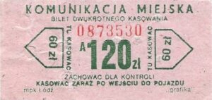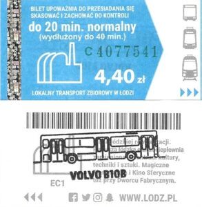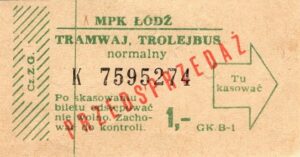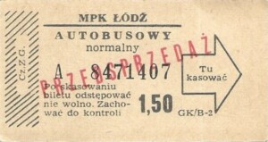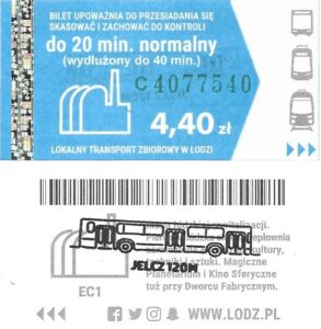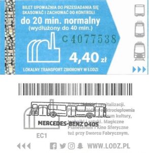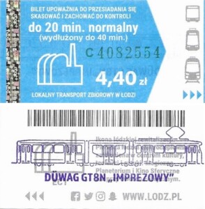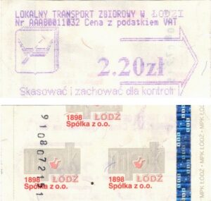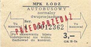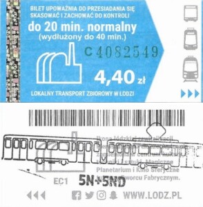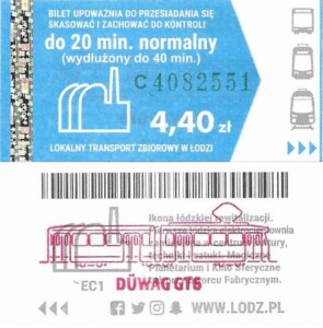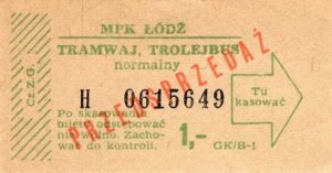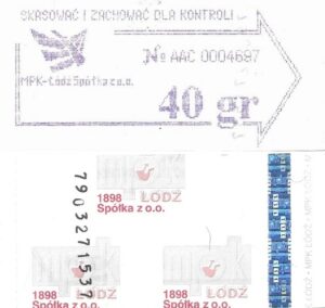 - MPK Łódź, Cz.Z.G. (bilety dwustronnego kasowania mają oznaczenie GK-B-2a):