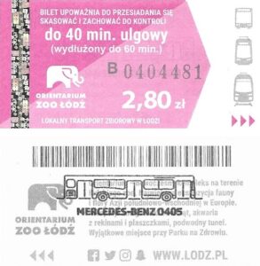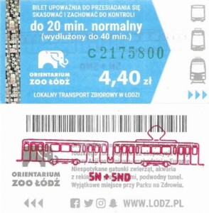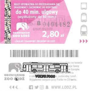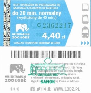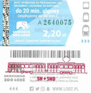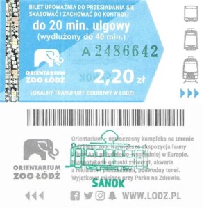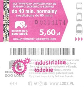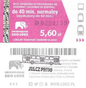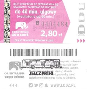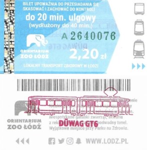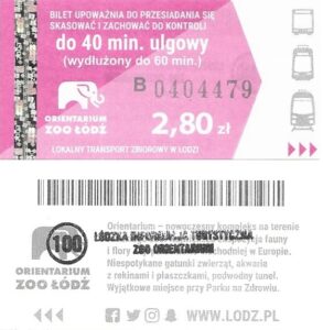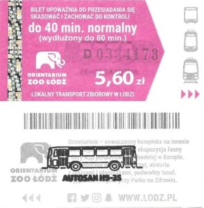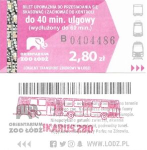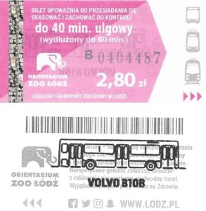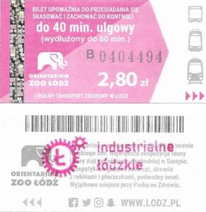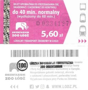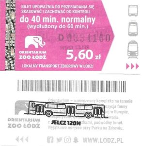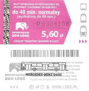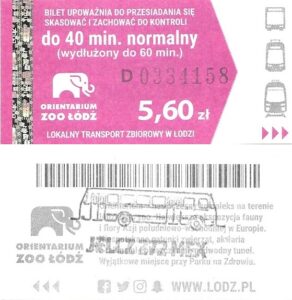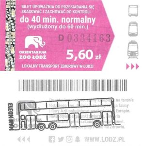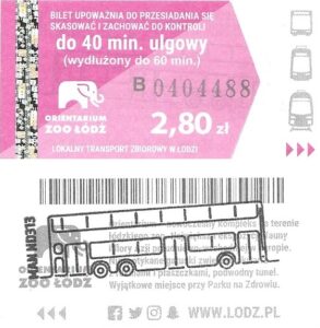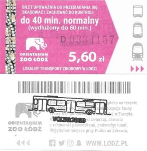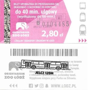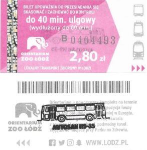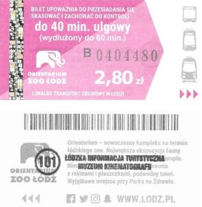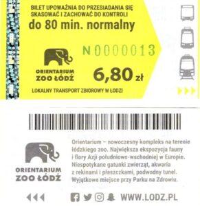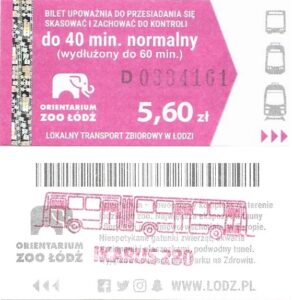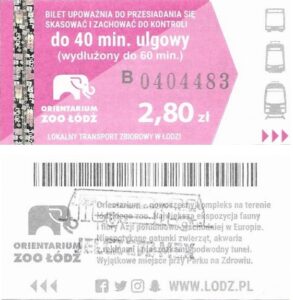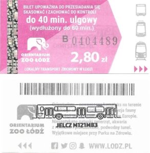 - Orientarium ZOO ŁÓDŹ, hologram z herbami miasta + podpis „ZDiT”, numerator zielony, kod kreskowy: