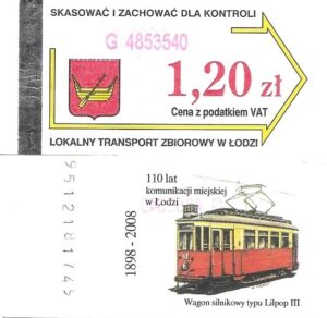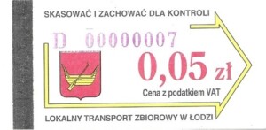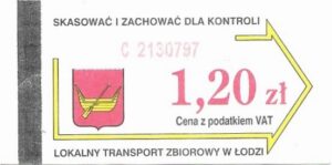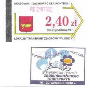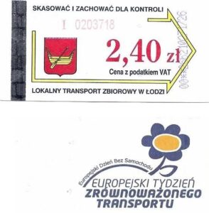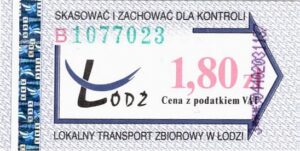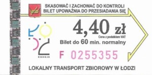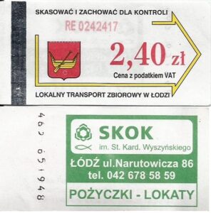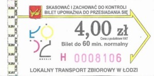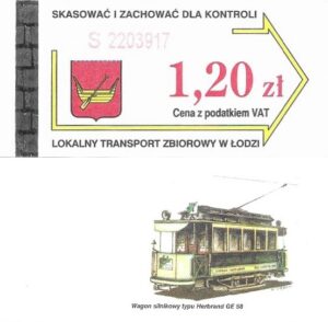 - 01.03.2000-31.03.2001, logotyp miasta, hologram z logotypami MPK Łódź, cena z podatkiem VAT: