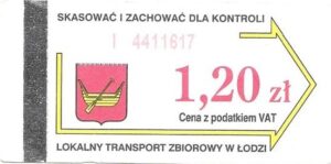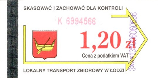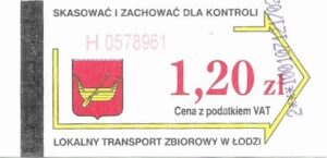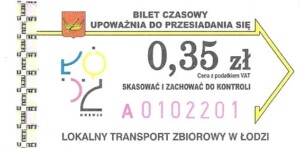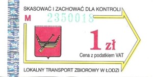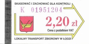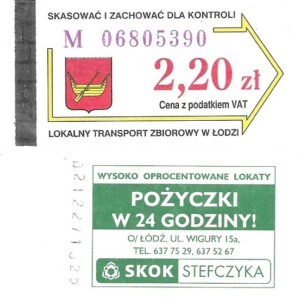 - 01.04.2001-22.08.2003, herb miasta, hologram z logotypami MPK Łódź, cena z podatkiem VAT: