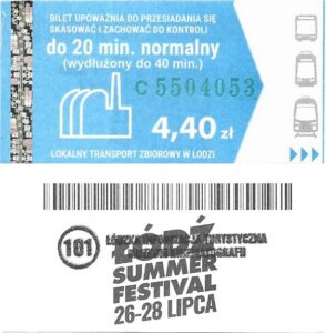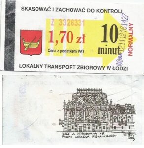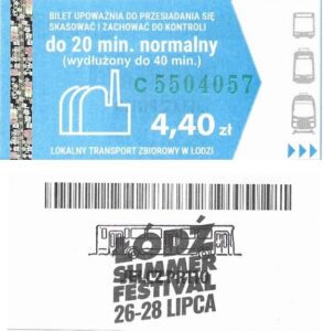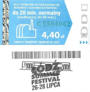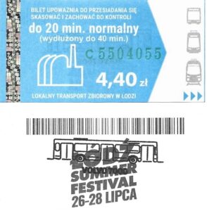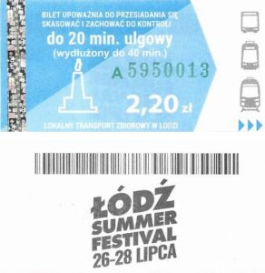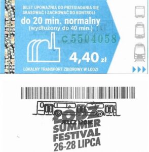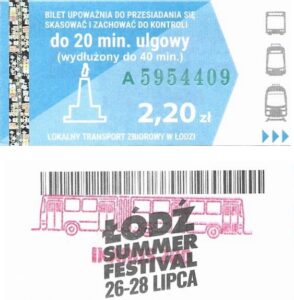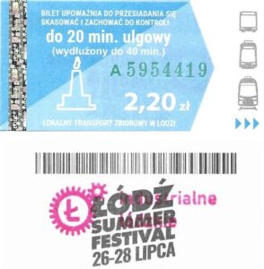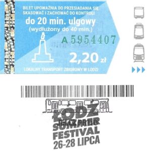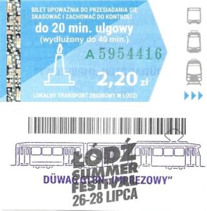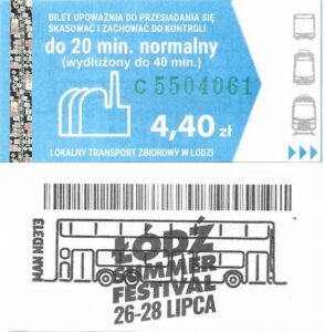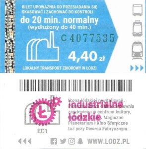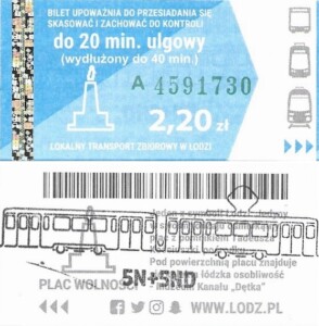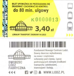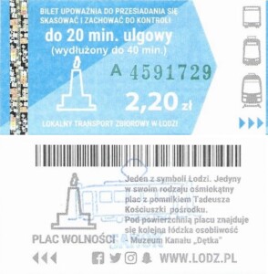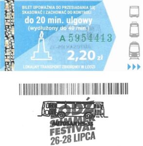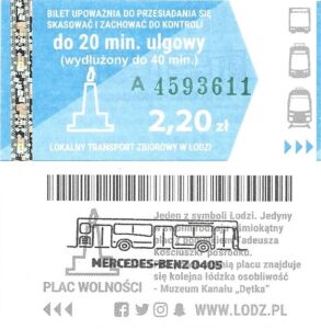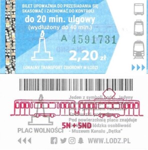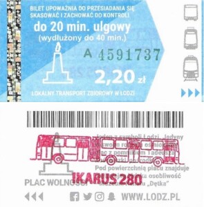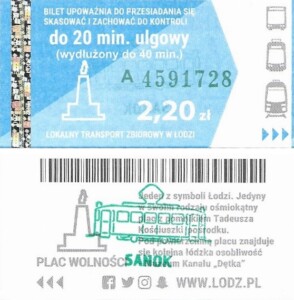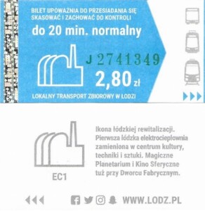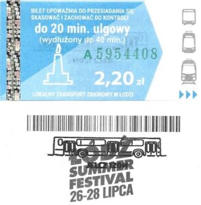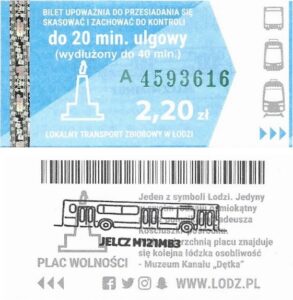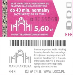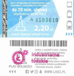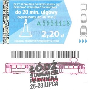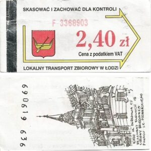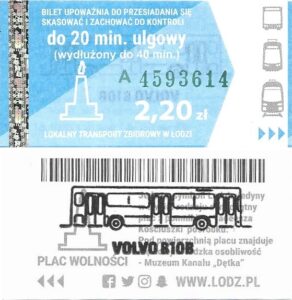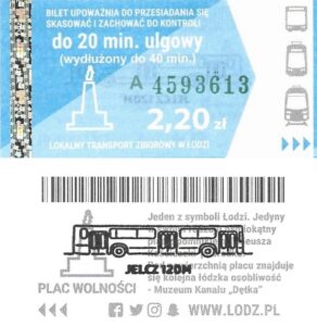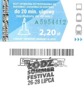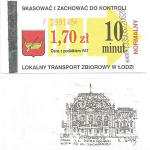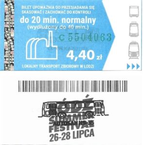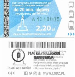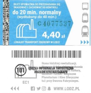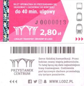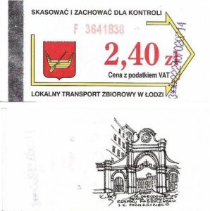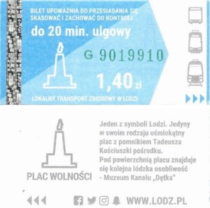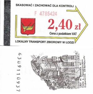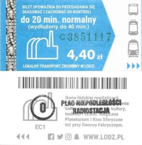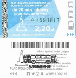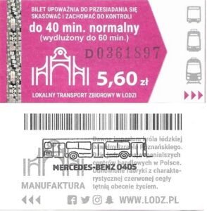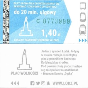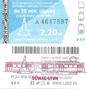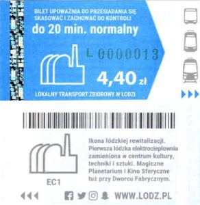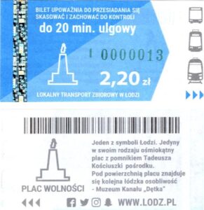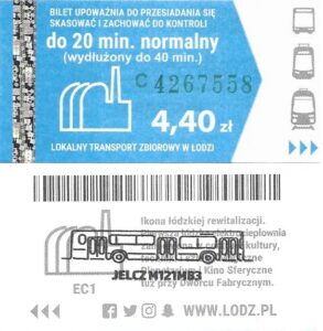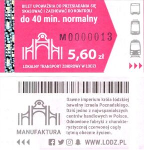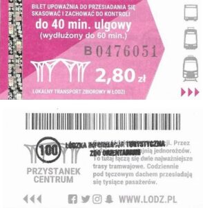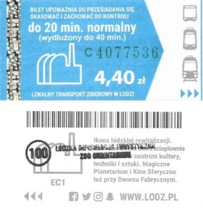 - Seria miejsc kojarzonych z Łodzią, hologram z herbami miasta + podpis „ZDiT”, numerator zielony, kod kreskowy: