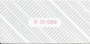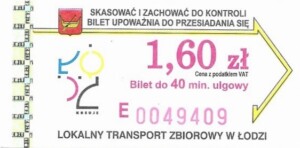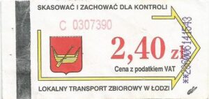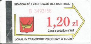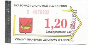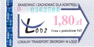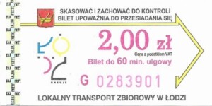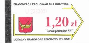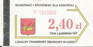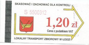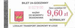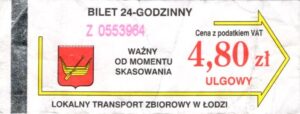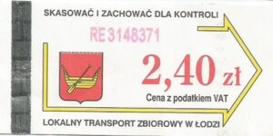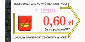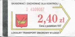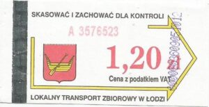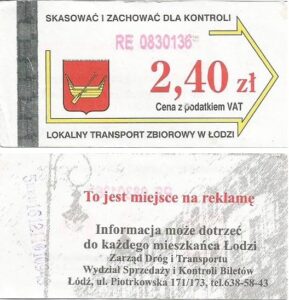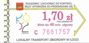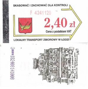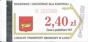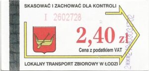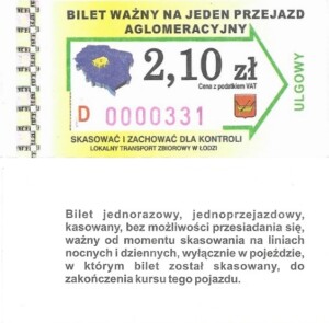 - Logotyp miasta, hologram z herbami miasta + podpis „ZDiT”, numerator pomarańczowy (u dołu biletu), cena z podatkiem VAT: