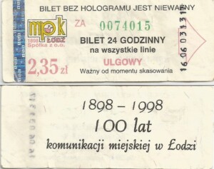 - 01.07.1997-31.01.1998, logo MPK Łódź (pod logiem podpis: 1998, Spółka z o.o.), hologram z logotypami MPK Łódź: