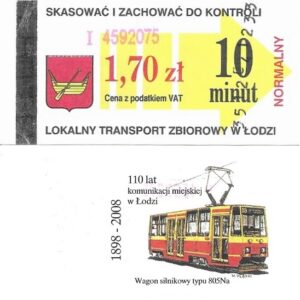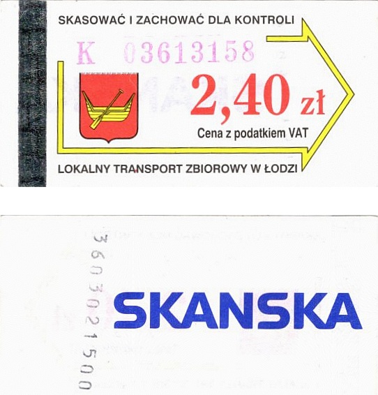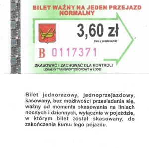 - 23.08.2003-13.08.2005, herb miasta, hologram z logotypami MPK Łódź, cena z podatkiem VAT: