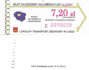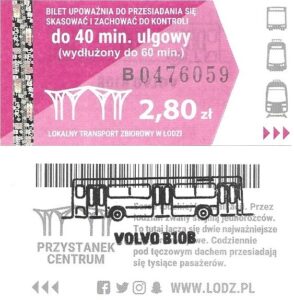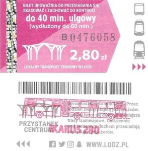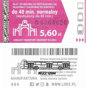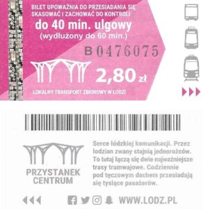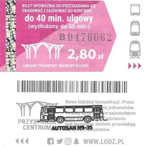 Uwaga: różowe bilety występują wyłącznie w sprzedaży w ramach Łódzkich Linii Turystycznych na liniach autobusowych 100 i 101