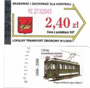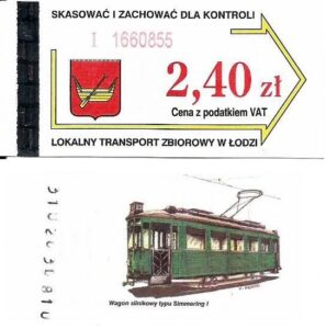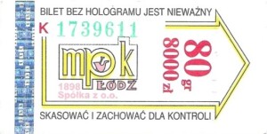 - 01.03.2000-31.03.2001, logotyp miasta, hologram z logotypami MPK Łódź (nowy logotyp), cena z podatkiem VAT:
