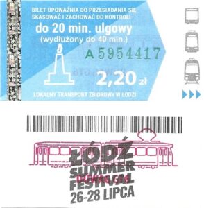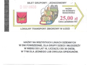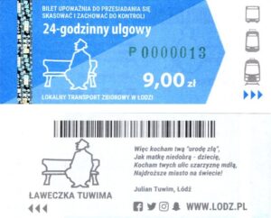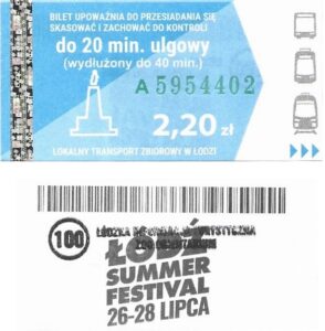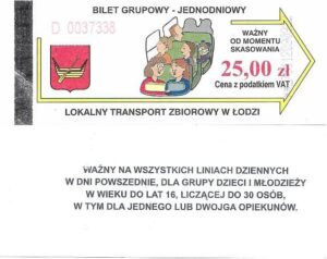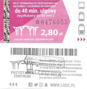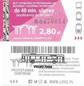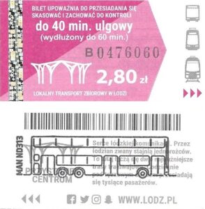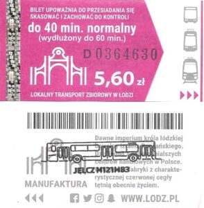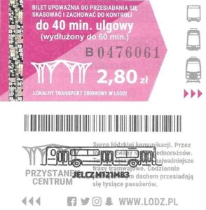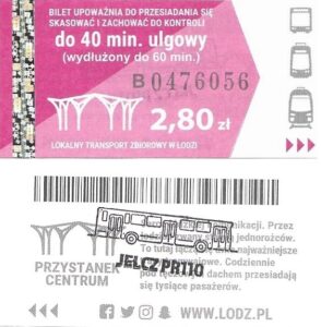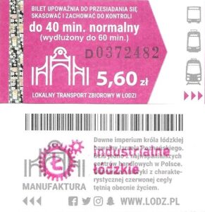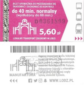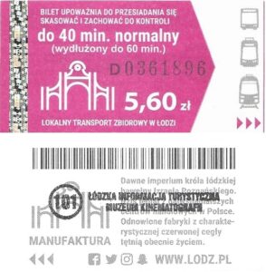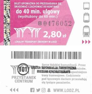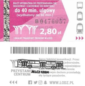 Uwaga: różowe bilety występują wyłącznie w sprzedaży w ramach Łódzkich Linii Turystycznych na liniach 100 i 101