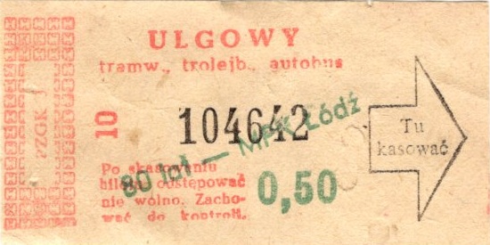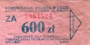 Uwaga: różowe bilety występowały wyłącznie w sprzedaży w ramach Łódzkich Linii Turystycznych na linii autobusowej 100