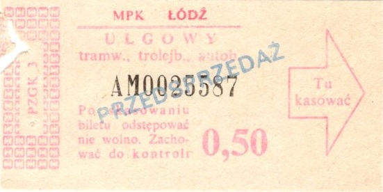 • MPK Łódź, Cz.Z.G. (bilety dwustronnego kasowania mają oznaczenie GK-B-2a):