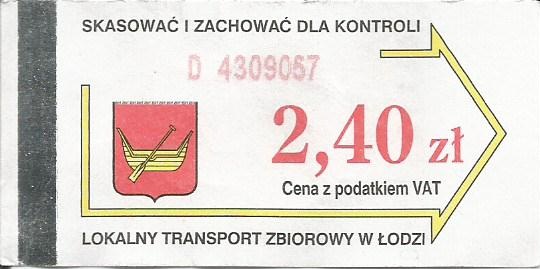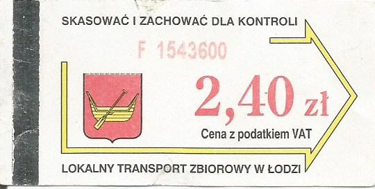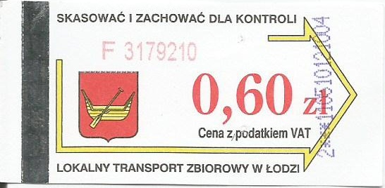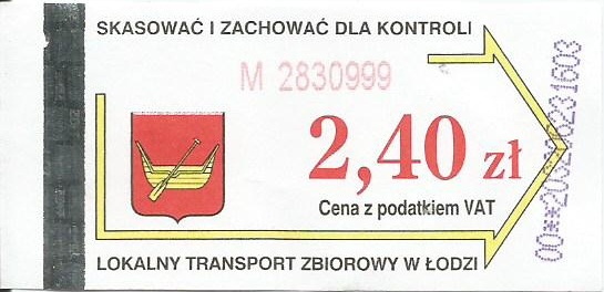 • 01.04.2001-22.08.2003, herb miasta, hologram z logotypami MPK Łódź (nowy logotyp), cena z podatkiem VAT: