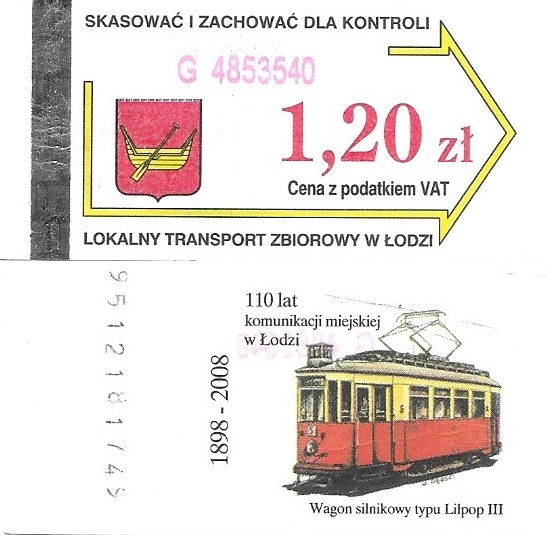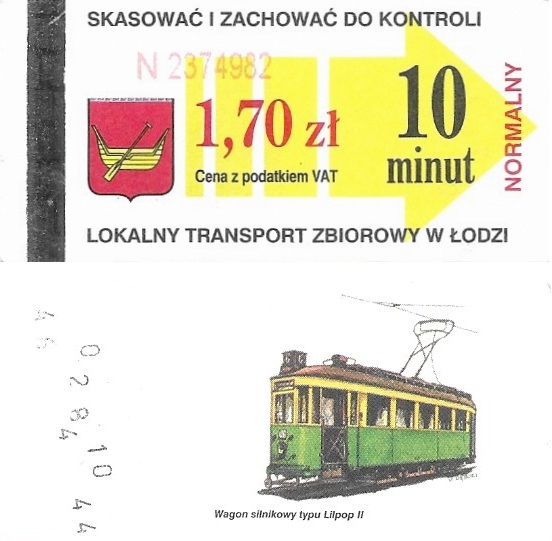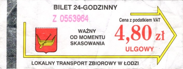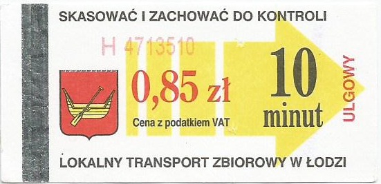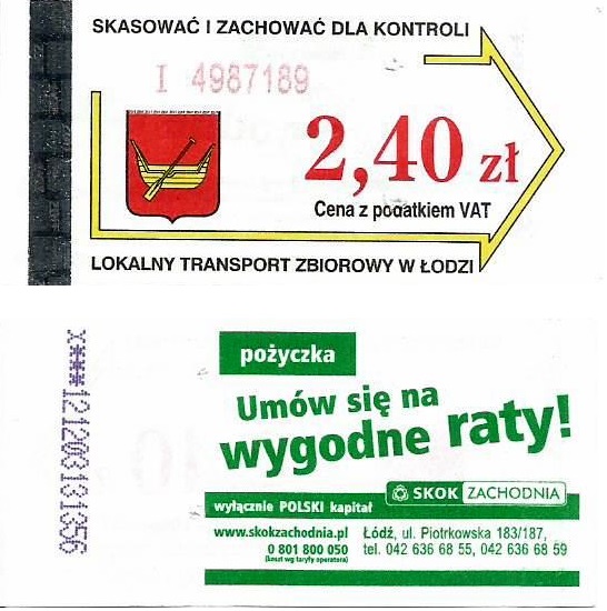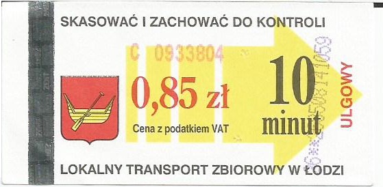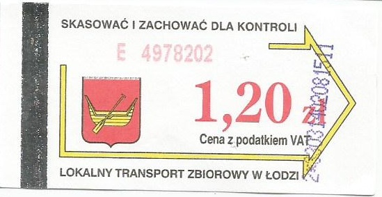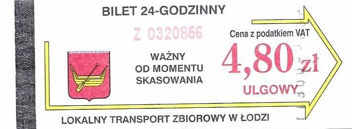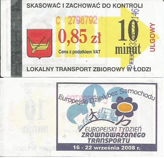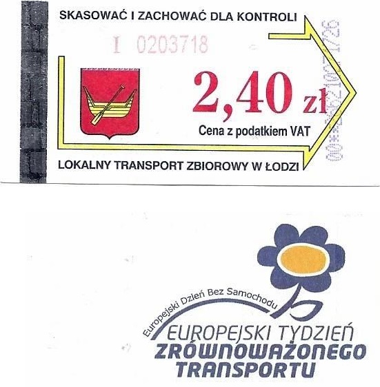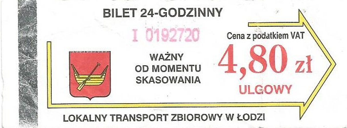 • 23.08.2003-13.08.2005, herb miasta, hologram z logotypami MPK Łódź, cena z podatkiem VAT: