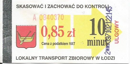 (Bilety 10-minutowe trafiły do taryfy od 01.01.2002)