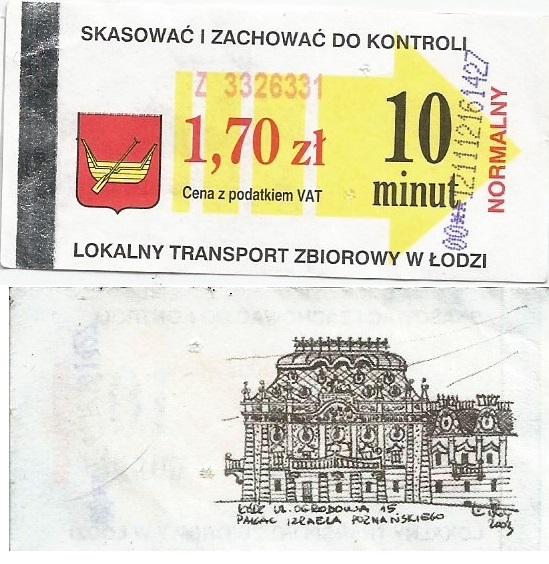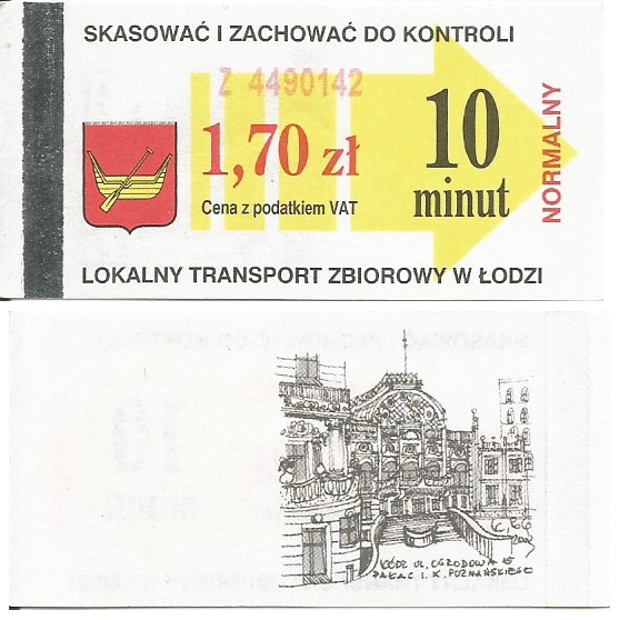 • Seria miejsc kojarzonych z Łodzią, hologram z herbami miasta + podpis „ZDiT”, numerator zielony, kod kreskowy: