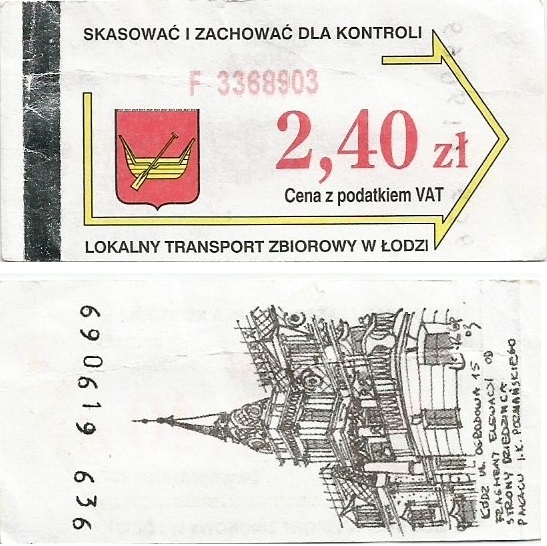 • 01.04.2001-22.08.2003, herb miasta, hologram z logotypami MPK Łódź, cena z podatkiem VAT: